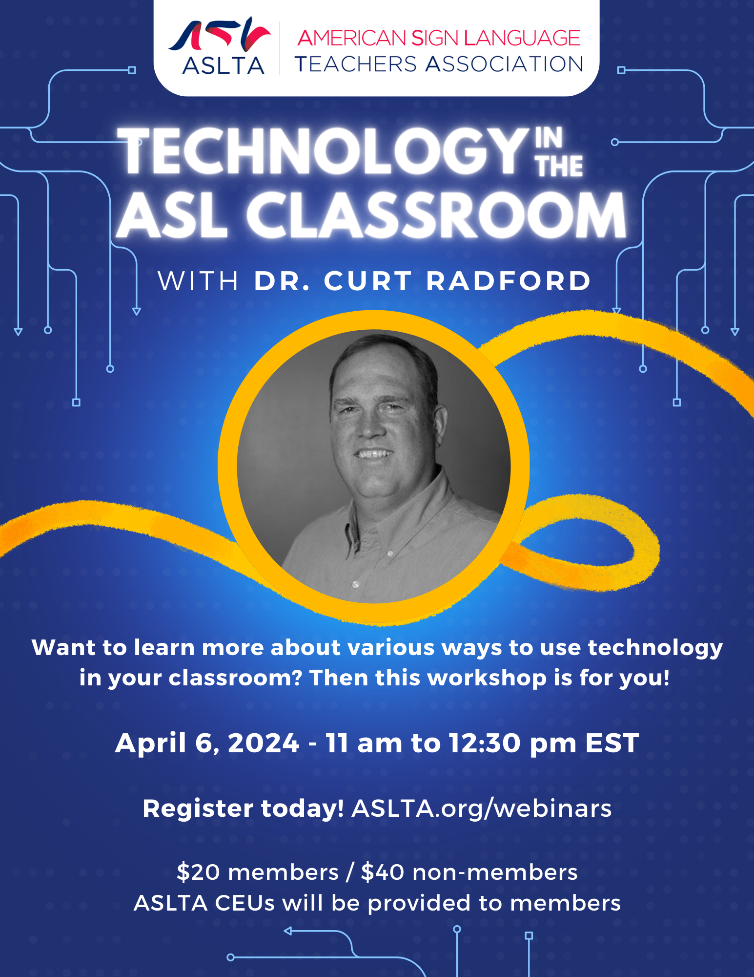 Discover innovative ways to enhance American Sign Language (ASL) instruction through technology in our upcoming workshop! Join us as we explore the dynamic intersection of technology and ASL education. From interactive apps to video conferencing tools, learn how to leverage digital resources to engage students, facilitate practice sessions, and foster a deeper understanding of ASL grammar and vocabulary. Whether you’re a seasoned ASL instructor or just starting out, this workshop will equip you with practical strategies and resources to elevate your teaching and empower your students in their journey to proficiency. Join us and embark on a digital adventure to enhance ASL learning like never before!