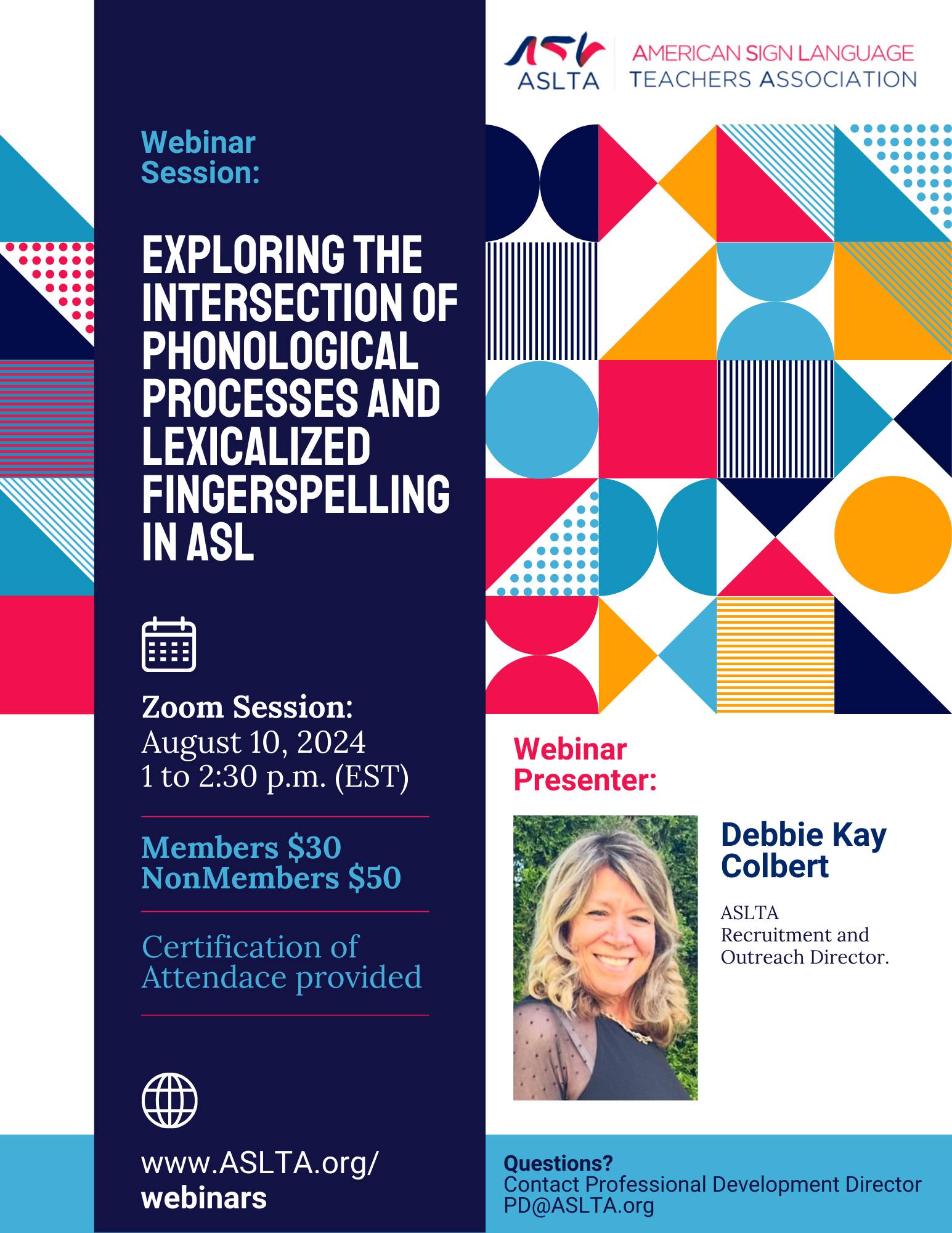 Join us and explore the fascinating interplay between ASL’s phonological building blocks and the unique phenomenon of lexicalized fingerspelling. Explore how fingerspelled words evolve over time, becoming ingrained in ASL’s lexicon, and how phonological processes influence their form and usage. This webinar promises to be an engaging and informative experience, offering fresh insights into the intricacies of fingerspelling in ASL.
